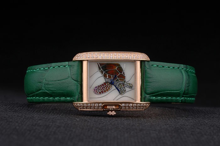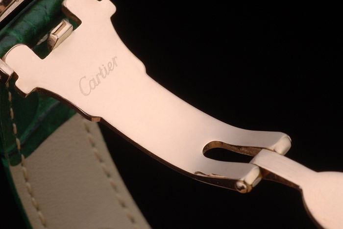 Bracelet de acero inoxidable: el calor correa de piel de cocodrilo verde en relieve Cartier rosa de 18 quilates chapado en oro plegable en cierre de hebilla
