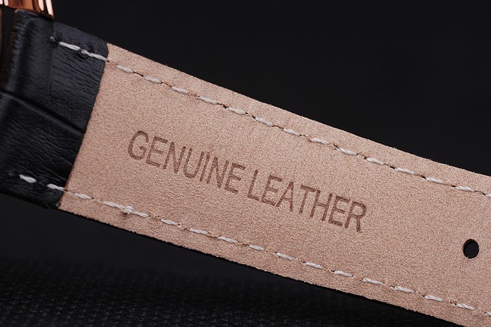 Bracelet de acero inoxidable: correa de piel de cocodrilo Negro con hilo blanco costura y en relieve de calor Audemars Piguet nombre y el logotipo y un Audemars Piguet inscriben rosa de 18 quilates chapado en oro-flip-sobre el gancho clasp