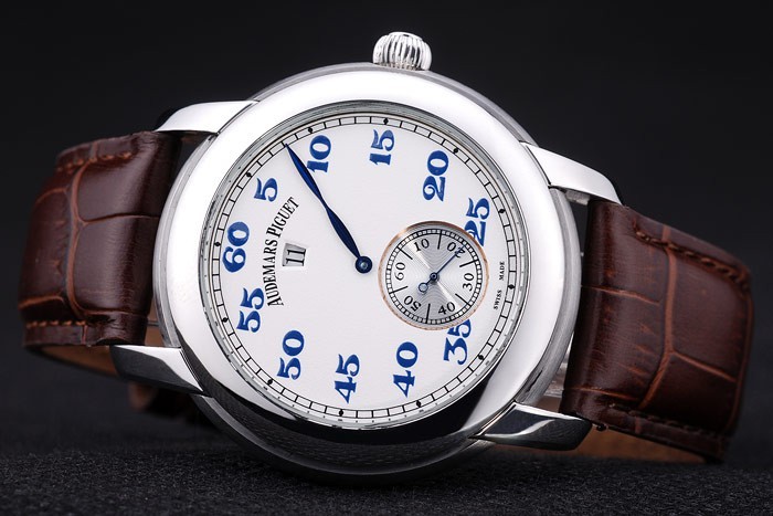 Bracelet: correa de piel de cocodrilo marrón con relieve de calor nombre y el logotipo de Audemars Piguet y un Audemars Piguet inscrito acero inoxidable Longitud flip-sobre el gancho clasp