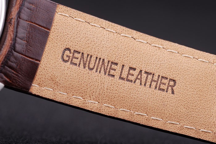 Bracelet: correa de piel de cocodrilo marrón con costuras de hilo blanco y en relieve de calor nombre y el logotipo de Audemars Piguet y un Audemars Piguet inscriben acero inoxidable flip-sobre el gancho clasp