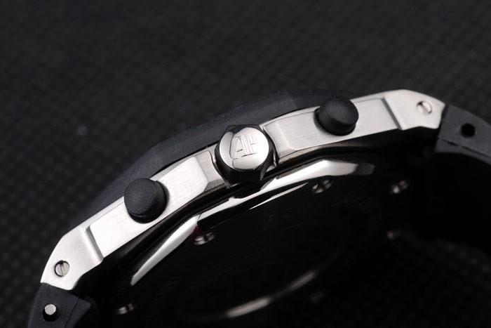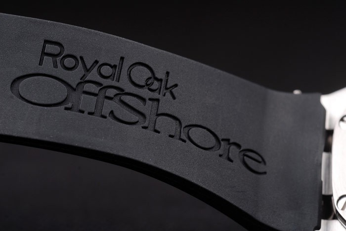Bracelet: Audemars Piguet Royal Oak Offshore repujado correa de caucho negro con Audemars Piguet grabado pulido doble de acero inoxidable -en Longitud clasp