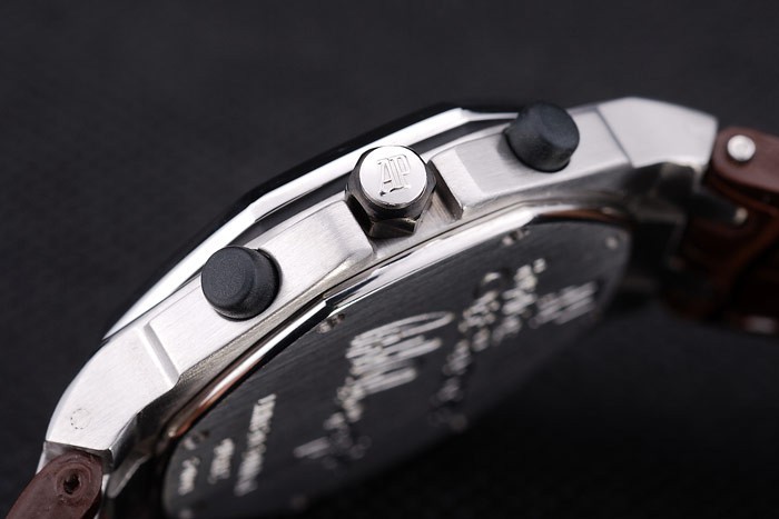Crown: acero inoxidable Audemars Piguet logotipo grabado ion chapado corona cutwork con dos pequeñas coronas de iones de chapado a cada lado de it