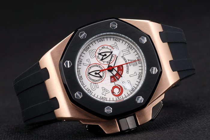 Volver: Rose-chapado en oro atornillado atrás con Royal Oak Offshore Alinghi grabado y logo