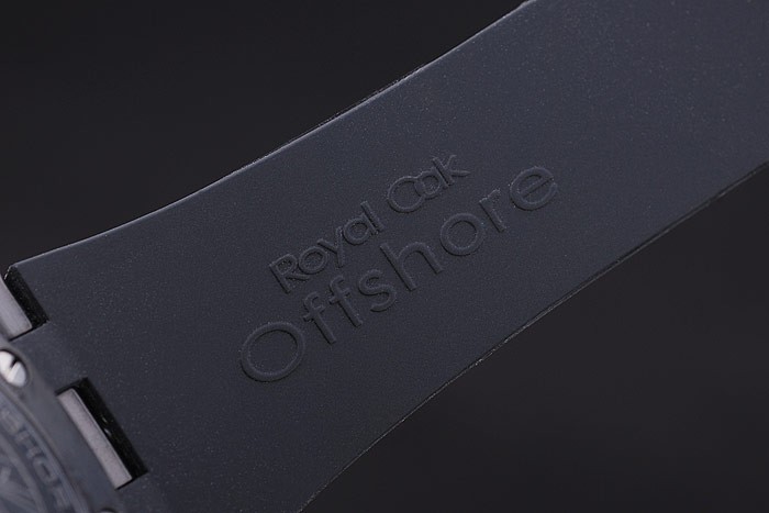 Bracelet de acero inoxidable: correa de caucho Negro con relieve de calor sello Audemars Piguet Royal Oak Offshore y un reloj Audemars Piguet inscrito ion-plateado gancho hebilla clasp