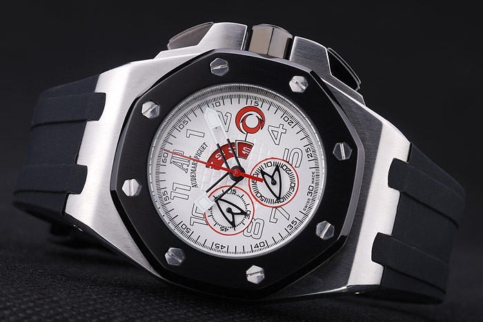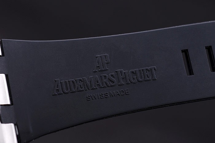 Bracelet: correa de caucho Negro con relieve de calor sello Audemars Piguet Royal Oak Offshore y un Audemars Piguet inscrito ion-plateado gancho hebilla clasp