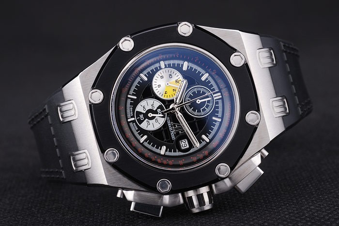 Bracelet de acero inoxidable: El calor en relieve Audemars Piguet Swiss Made logotipo y correa de caucho negro con Audemars Piguet grabado inoxidable acero gancho hebilla clasp