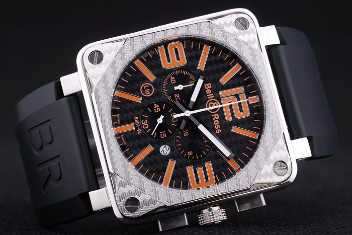 Bracelet de acero inoxidable: El calor en relieve Bell&Ross logotipo y correa de caucho negro código de producto con la BR inscribe acero inoxidable cepillado gancho de la hebilla clasp