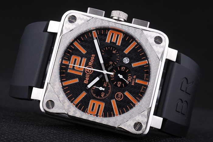 Crown: Bell&Ross logotipo grabado corona cutwork acero inoxidable con rectangulares coronas de pulsadores a cada lado de it