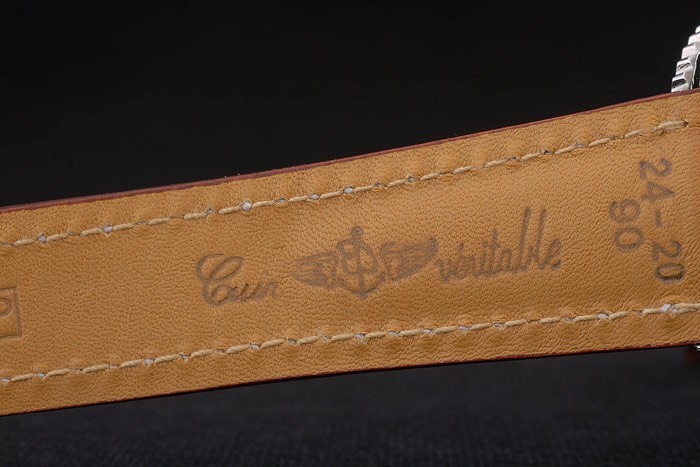 Bracelet de acero inoxidable: correa de piel de cocodrilo marrón en relieve de calor Breitling con costuras de hilo blanco y el logotipo grabado, pulido plegable en acero inoxidable clasp