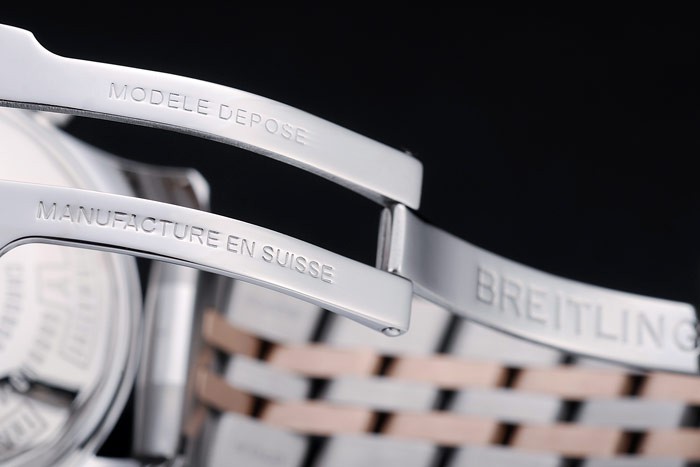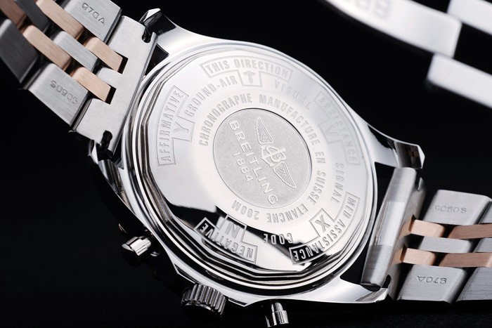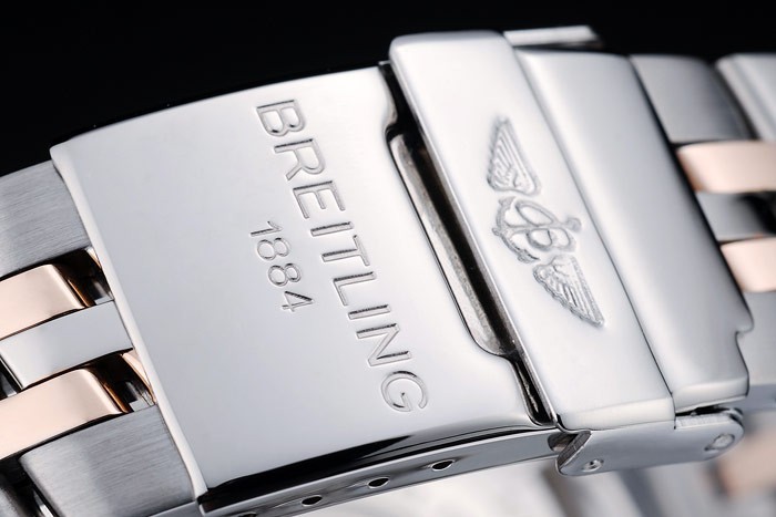 Este reloj tiene el vidrio AR. El color de la cara aparecerá diferentes colores dependiendo de cómo la luz cae sobre itBack: Acero inoxidable pulido complemento de vuelta con Breitling engravings