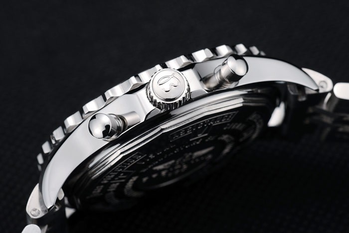 Crown: pulido corona calado de acero inoxidable con Breitling logotipo y dos pulsadores coronas de acero inoxidable más pequeños a cada lado de it