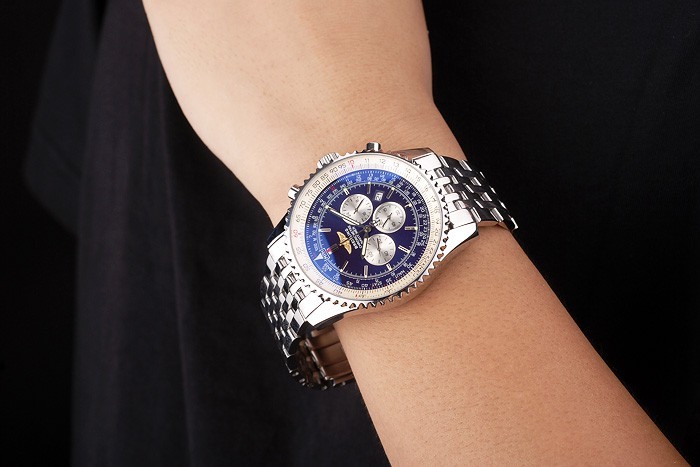 Este reloj tiene el vidrio AR. El color de la cara aparecerá diferentes colores dependiendo de cómo la luz cae sobre itBack: acero inoxidable de empuje en el caso de vuelta con Breitling engravings