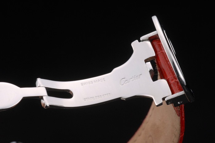 Bracelet de acero inoxidable: el calor Cartier en relieve correa de piel de cocodrilo rojo con pulido de acero inoxidable plegable en cierre de hebilla