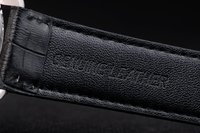 Bracelet de acero inoxidable: el calor correa de piel de cocodrilo negro en relieve IWC Schaffhausen con costuras de hilo blanco y la CBI inscrito inoxidable acero gancho hebilla clasp