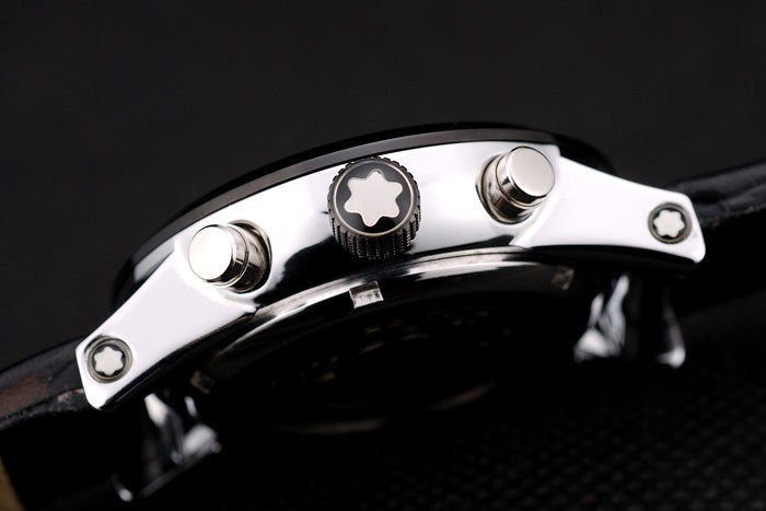 Crown: enchapado en ion corona de calado con el logotipo de Montblanc y dos coronas de acero inoxidable pulido pulsadores a ambos lado de it