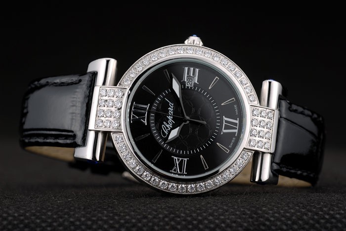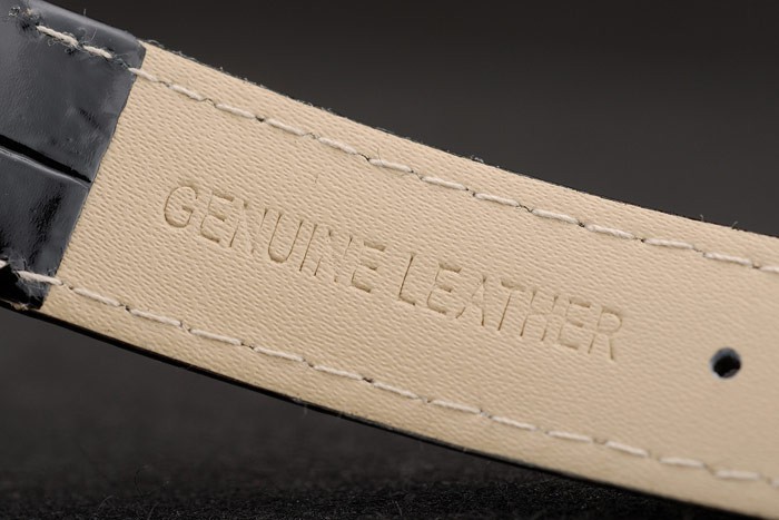 Bracelet de acero inoxidable: correa de piel de cocodrilo Negro con el sello en relieve de calor Chopard y Chopard grabado de acero inoxidable gancho hebilla clasp