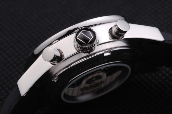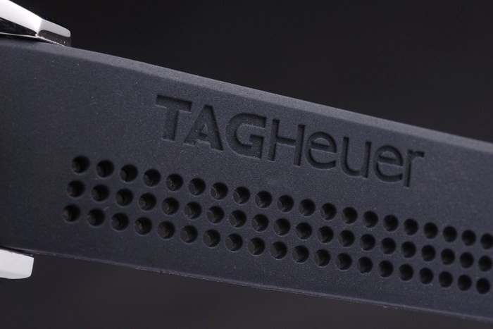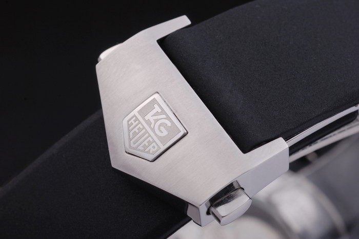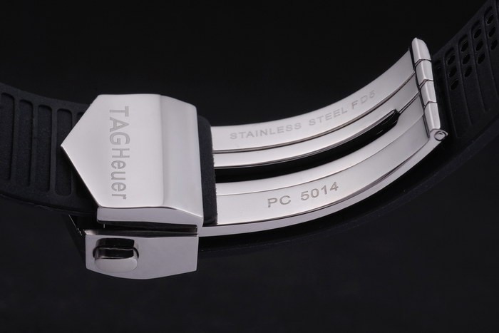 Bracelet acero inoxidable cepillado: Negro correa de caucho con Tag Heuer marcado y un clasp