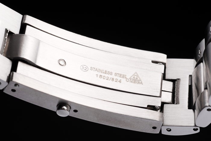 Crown: acero inoxidable cepillado cutwork corona con logo Omega además de una corona adicional en el frente superior corner