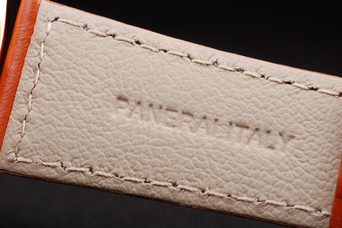 Bracelet: Correa de piel marrón con costuras blancas y el calor Officine Panerai en relieve Italia sello y rosa de 18 quilates chapado en oro broche de gancho de la hebilla con Panerai engraving