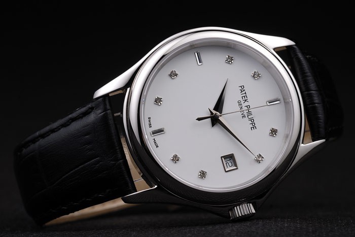 Bracelet de acero inoxidable: correa de piel de cocodrilo Negro con relieve de calor Sello Patek Philippe y pulido de acero inoxidable gancho de la hebilla broche con Patek Philippe engraving