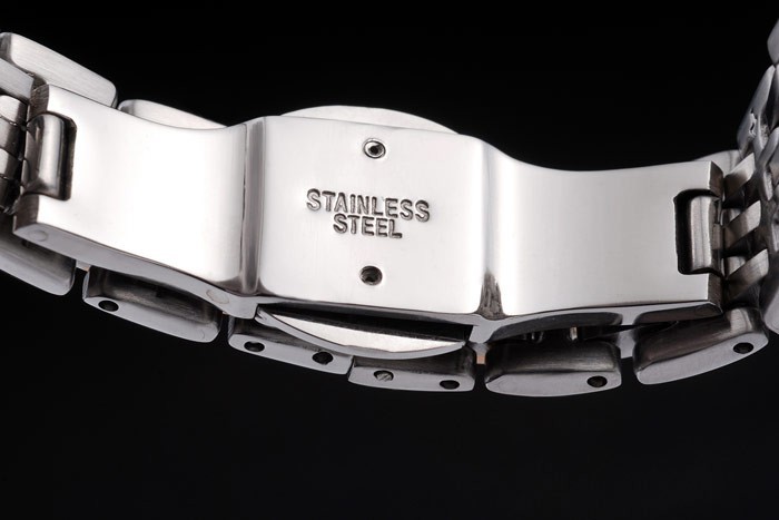 Bezel: Finamente vinculado y brazalete de acero inoxidable pulido con liberación de empuje oculto Longitud clasp