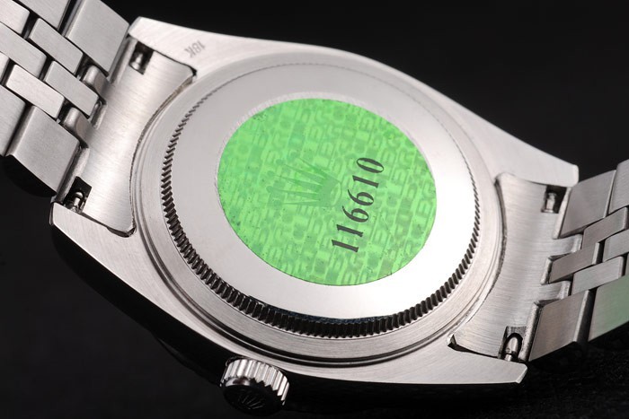 Volver: Acero inoxidable empuje en caso de vuelta con el verde Rolex logo stamp