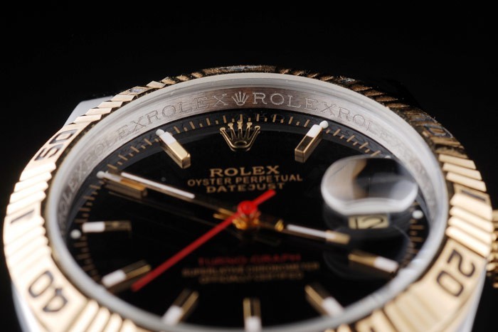 Bezel: oro amarillo de 18 quilates chapado en bisel calado de acero inoxidable con minuto negro Tipo markers