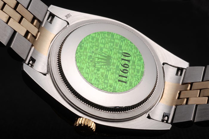 Volver: Acero inoxidable empuje en caso de vuelta con el verde Rolex logo stamp