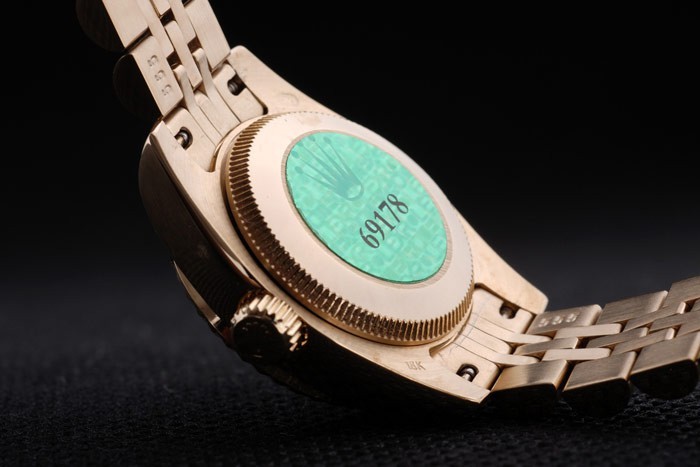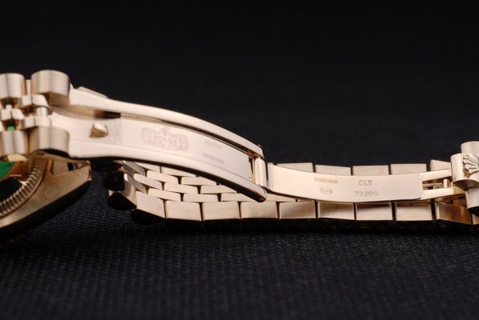 Volver: oro amarillo de 18 quilates chapado en caso de empuje de acero inoxidable de nuevo con el verde Rolex logo stamp