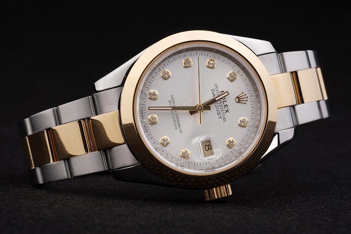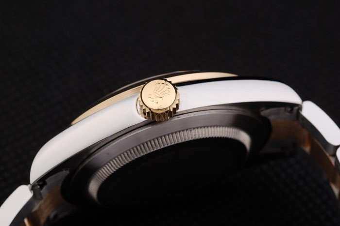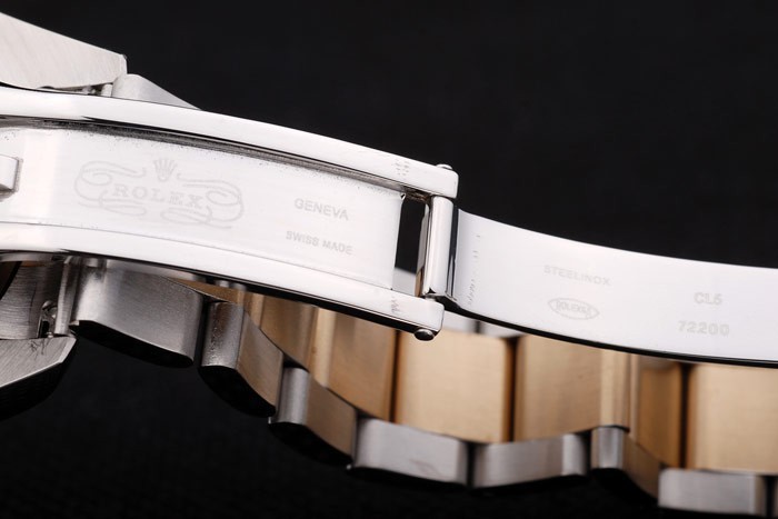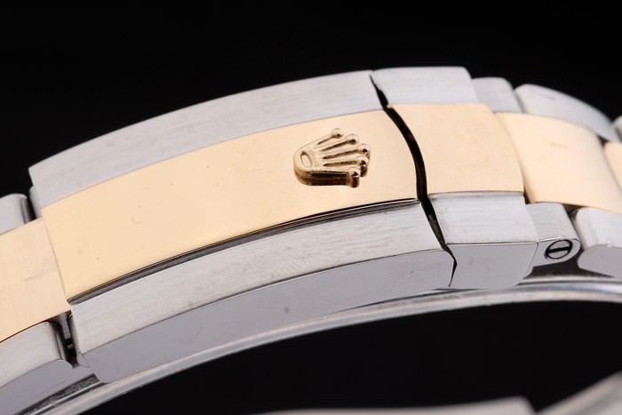 Case japonesa: acero inoxidable cepillado y amarillo cadena de eslabones de oro con el doblez sobre el corchete y Rolex corona engraving