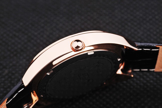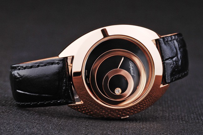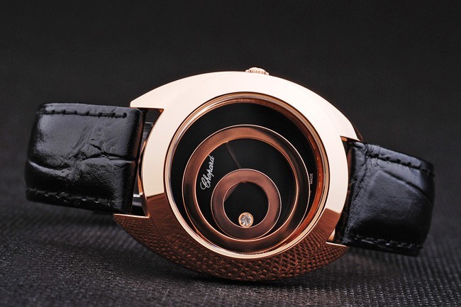 Imitación ingeniosa y suntuosa del Chopard 3905, este tiempo clásico y vanguardista en belleza. Correa milanese de cuero de serpiente de 199 x 18 mm con broche de gancho, esfera de 41 x 35 mm y bisel de oro rosa.
