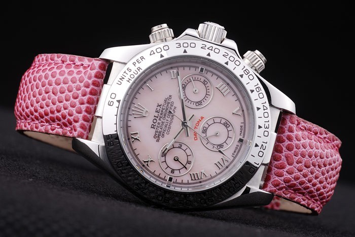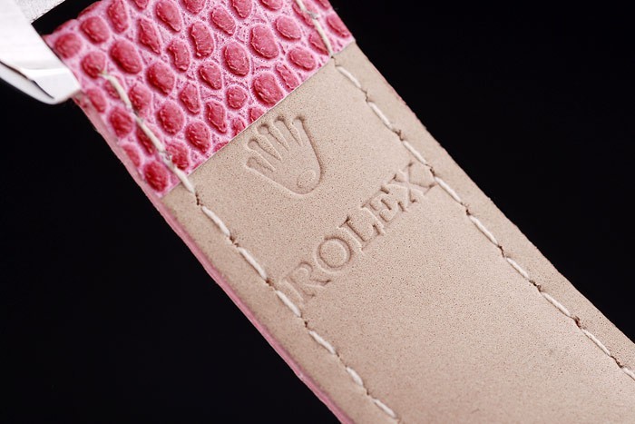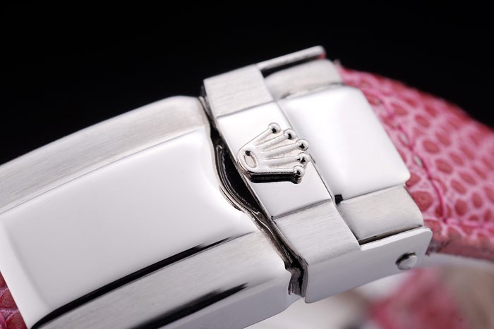 Bracelet de acero inoxidable: Rolex y correa de cuero de calor logotipo en relieve de color rosa de piel de serpiente con el logotipo de Rolex pulido clasp