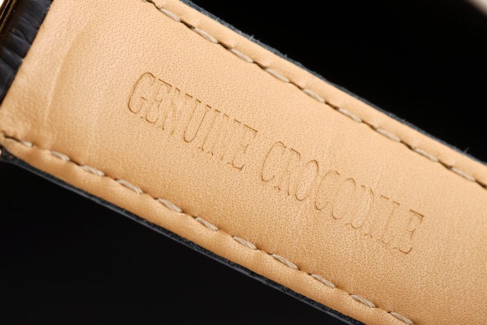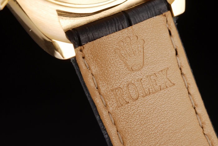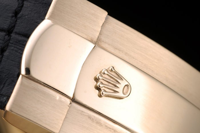 Bracelet: correa de piel de cocodrilo negro grabado en relieve de calor Rolex con grabado cierre desplegable de oro amarillo con el logotipo de Rolex en top