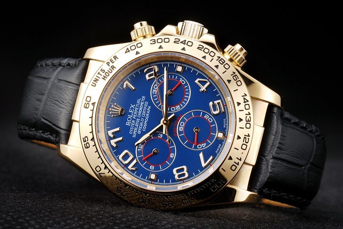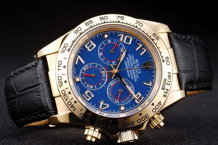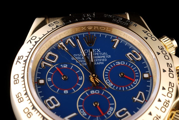 Crown: 18k corona amarilla calado de oro con el logotipo de Rolex y dos botones pulsadores cutwork coronas más pequeñas a cada lado de it