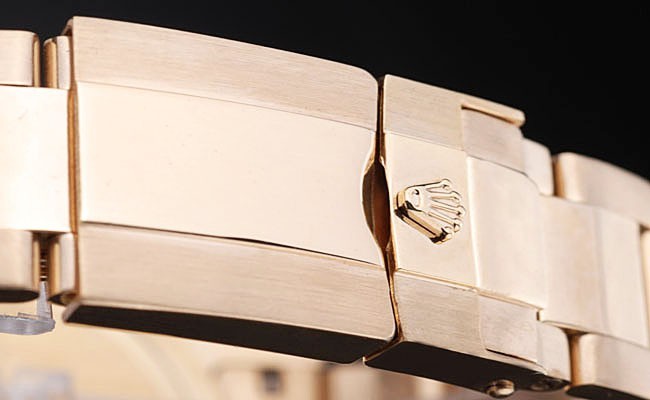 Crown: entonadas oro corona de calado con el logotipo de Rolex y dos coronas adicionales en cada lado de it