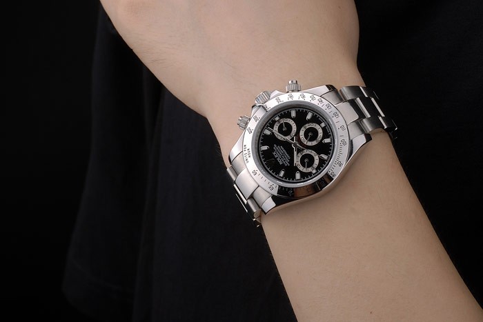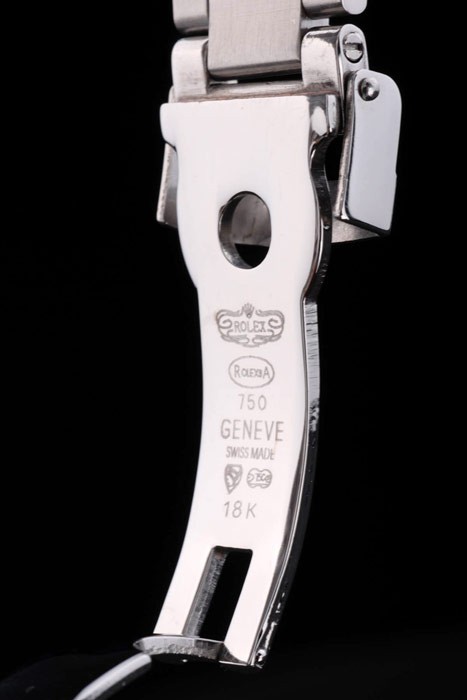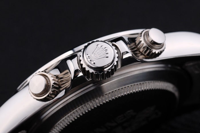 Crown: acero inoxidable pulido corona de calado con el logotipo de Rolex y dos coronas adicionales a cada lado de it