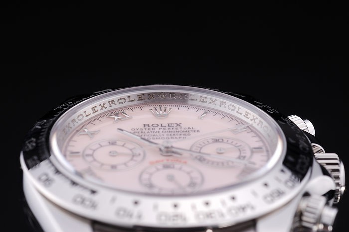 Bracelet: correa de piel de serpiente rosada con Rolex y el logotipo grabado y cierre desplegable de acero inoxidable donde se presentan Rolex logo