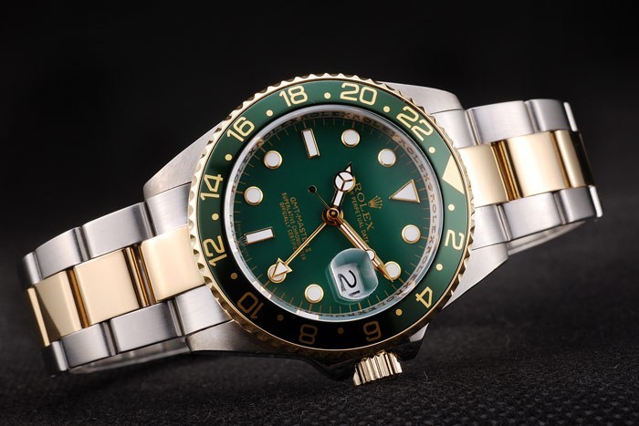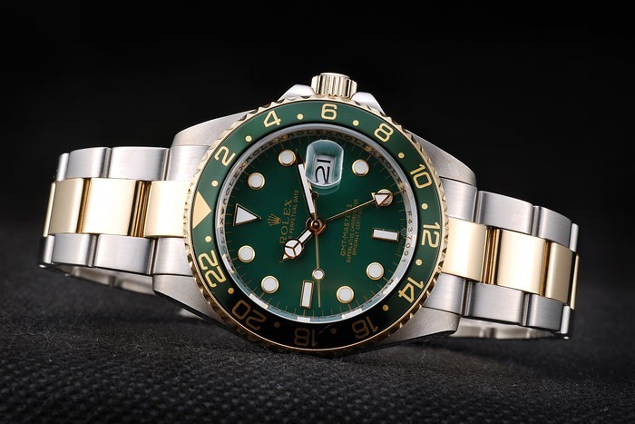 Bezel: verde bisel de cerámica con cutwork índice de oro y número arábigo markers