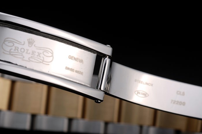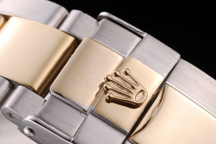 Bracelet de acero inoxidable: Oro amarillo plateado y se sacudió la pulsera de eslabones de acero inoxidable con cierre desplegable marcados con el logotipo de Rolex en top