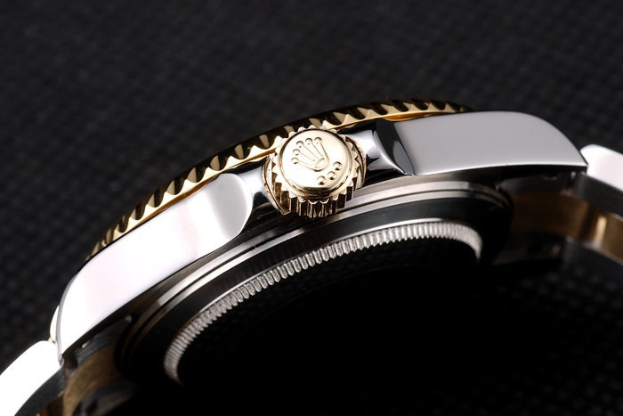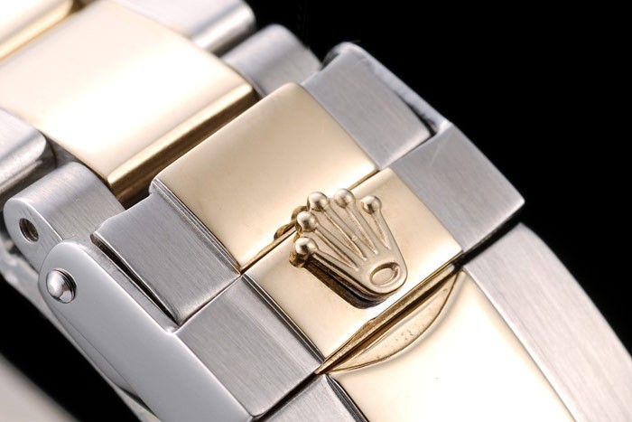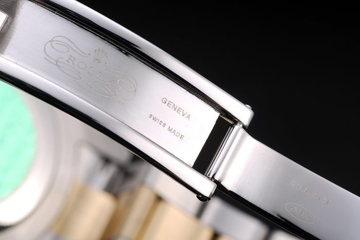 Bracelet de acero inoxidable: Oro amarillo plateado y se sacudió la pulsera de eslabones de acero inoxidable con cierre desplegable marcados con el logotipo de Rolex en top