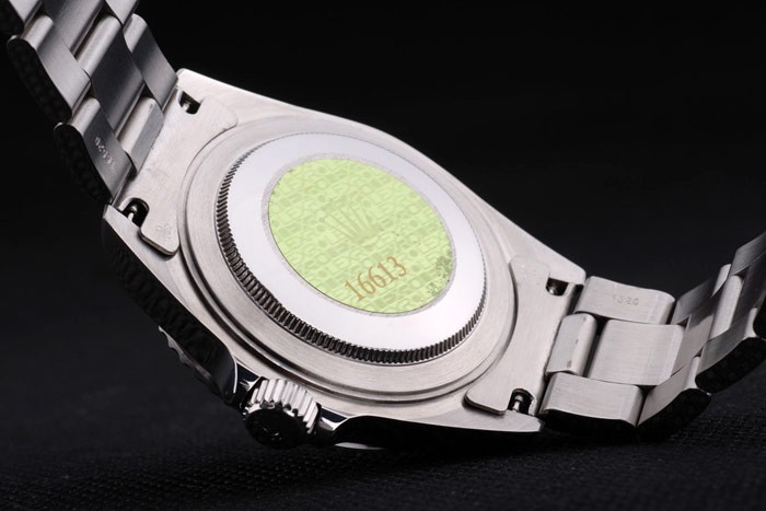 Volver: Acero inoxidable empuje en caso de vuelta con el verde de Rolex grabado stamp