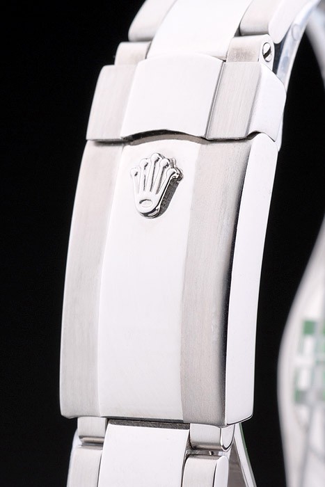 Bracelet acero inoxidable cepillado y pulido brazalete de eslabones de acero inoxidable con grabado Rolex doblar por la hebilla mostrando la longitud Rolex logo