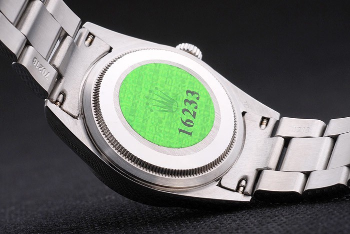 Volver: Acero inoxidable empuje en caso de vuelta con el verde de Rolex grabado stamp