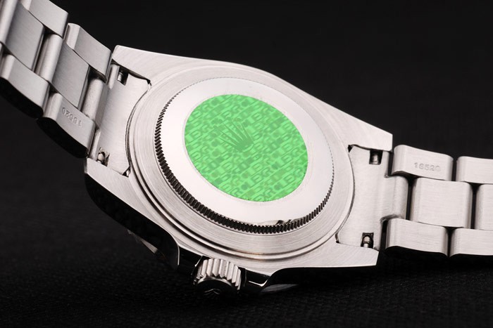 Back: Empuje en acero inoxidable de nuevo con la etiqueta engomada verde Rolex y markings