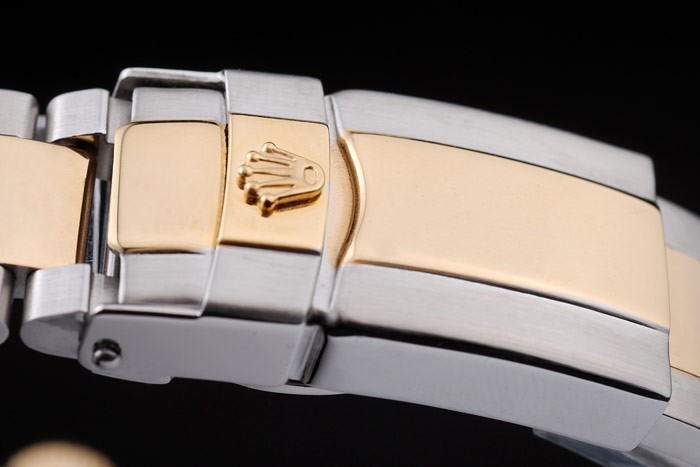 Bracelet de acero inoxidable: acero inoxidable cepillado y oro rosa acoplamiento de la pulsera con el grabado Rolex en el interior de la hebilla de despliegue y un logotipo de Rolex en top