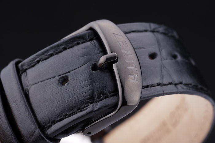 Bracelet de acero inoxidable: El calor en relieve correa de piel de cocodrilo negro Zenith con acero inoxidable pulido gancho hebilla clasp